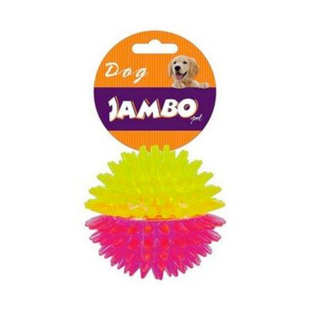 Bola Espinho Dual Color Jambo Rosa e AmareloA Bola Espinho Dual Color Jambo Rosa e Amarelo é sensacional para distrair seu pet! É produzida com material resistente, em silicone e é atóxica.Seus espinhos auxiliam na remoção do tártaro dos dentes e massageiam a gengiva, além disso, a brincadeira com a bola alivia o estresse do pet.Medidas aproximadasDiâmetro: 10 cm